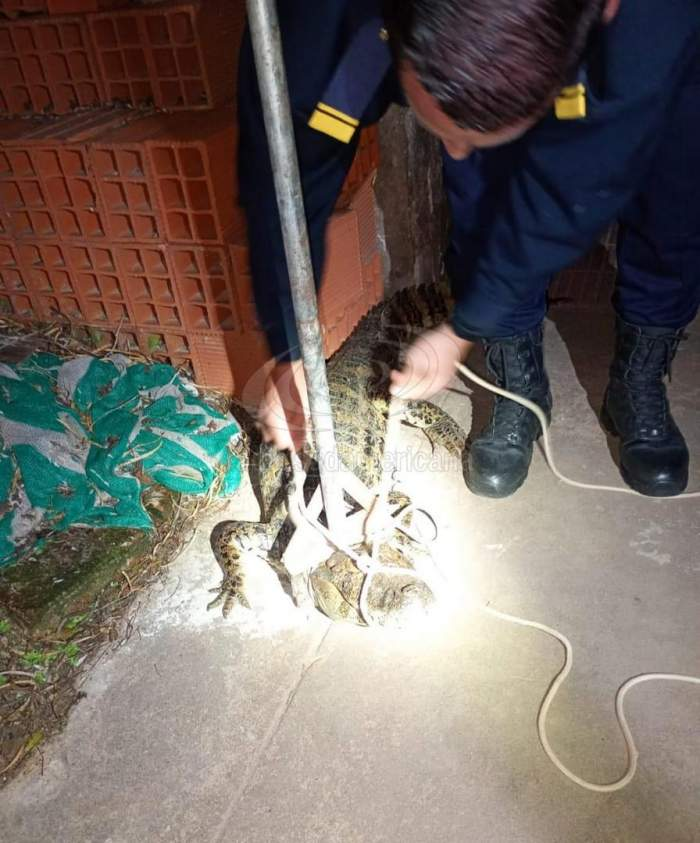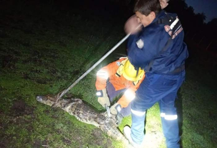 El animal no estaba en el Hospital, pero se encontraba en un domicilio cercano, en la zona del cruce de calles 25 de Mayo y Pedro Bernardo Sánchez. Los agentes llegaron e inmovilizaron al caimán y cuando asistieron los bomberos, lo pusieron a resguardo.