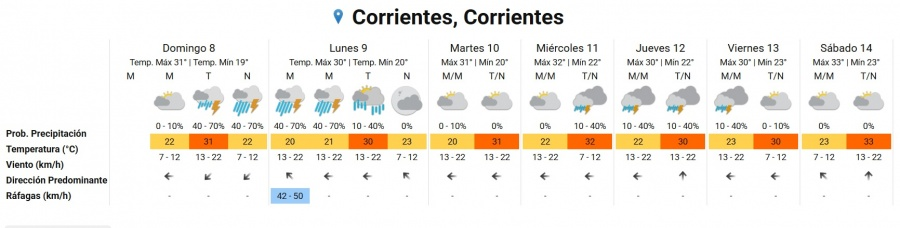 El organismo indicó que el área será afectada por tormentas aisladas de variada intensidad, algunas localmente fuertes. Las mismas estarán acompañadas principalmente por lluvias abundantes en cortos períodos, actividad eléctrica frecuente, ocasional caída de granizo y ráfagas que pueden superar los 60 km/h.